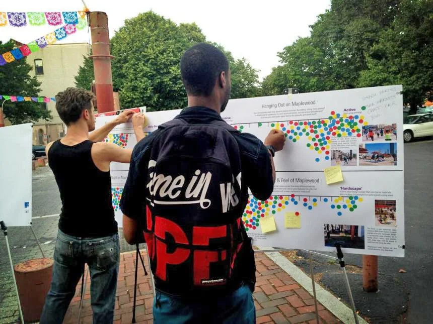 Maplewood Mall is located in Philadelphia’s Central Germantown Business District. Bookended by two public plazas, the mall is lined by two and three-story buildings with ground floor storefronts. The mall was created from Maplewood Avenue in the 1970s by converting the original roadway into the curb-less pedestrian-scale street it is today. No major physical improvements had been made since its inception, and the mall’s infrastructure was in poor condition. The goal of the reconstruction was to improve the physical condition of the mall and utilize a community-driven design for the roadway and public plazas that supports the needs of both business owners as well as residents, while re-invigorating this once-vibrant community hub.