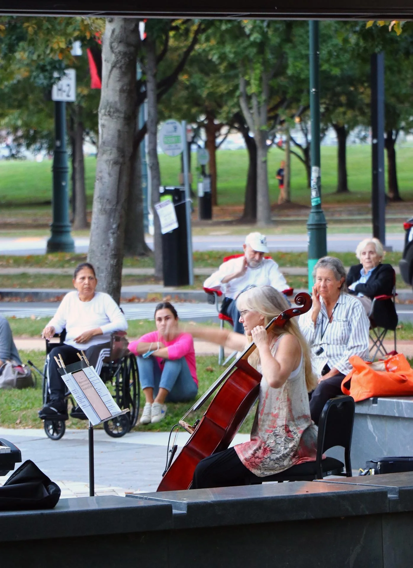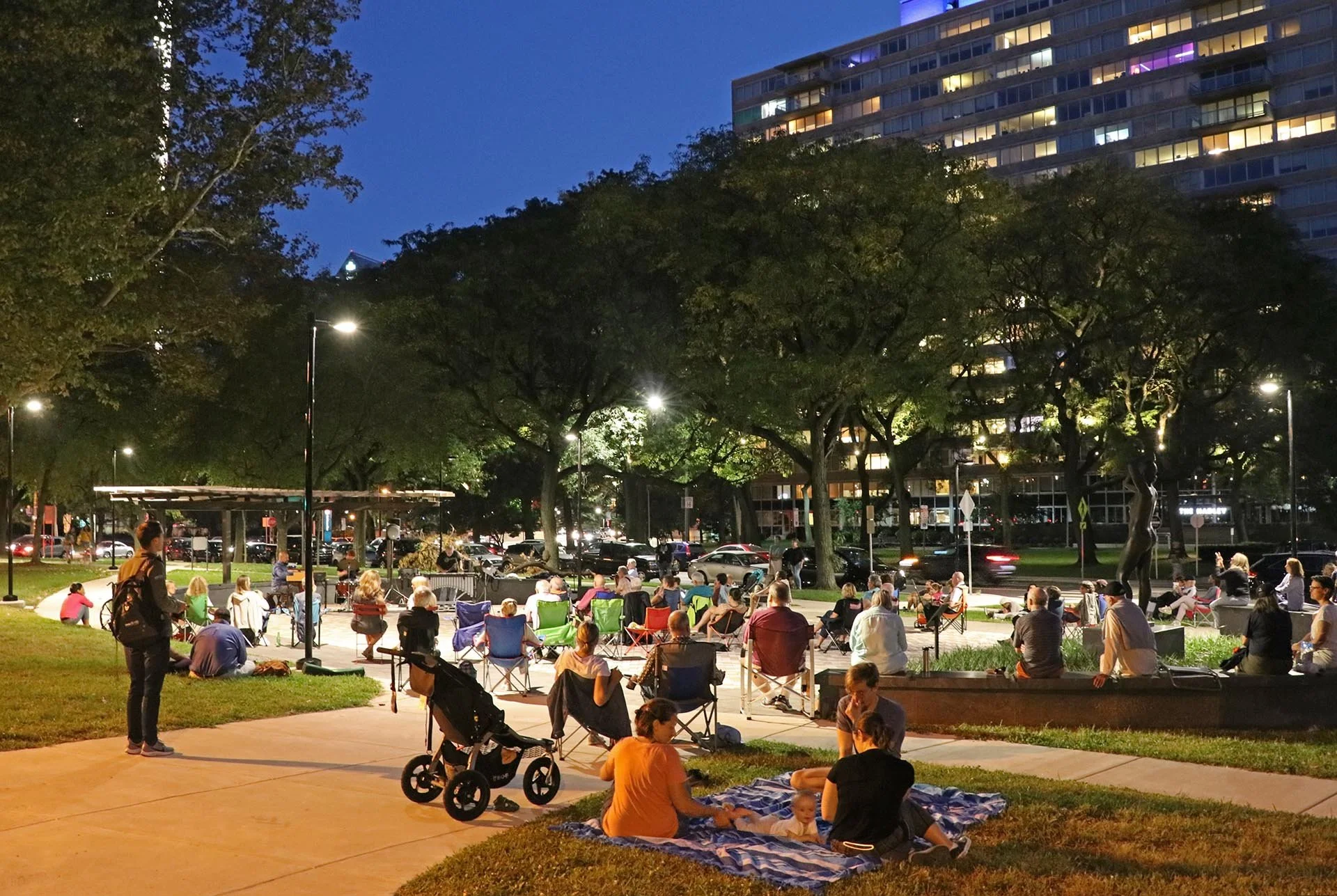The design includes new walkways that connect the site to the Parkway and beyond; site furnishings, planting, and a plaza. Design recommendations include reconfigured parking and bump-outs for traffic calming and redirected pedestrian crossings. A small plaza near 22nd Street features a trellis to accommodate informal gatherings, seasonal vendors, small-scale performances and seating. The large west lawn area was designed for passive and active activities, and special events. The memorial grove of trees on the site’s far west side will be preserved and the lawn will be replaced by meadow.