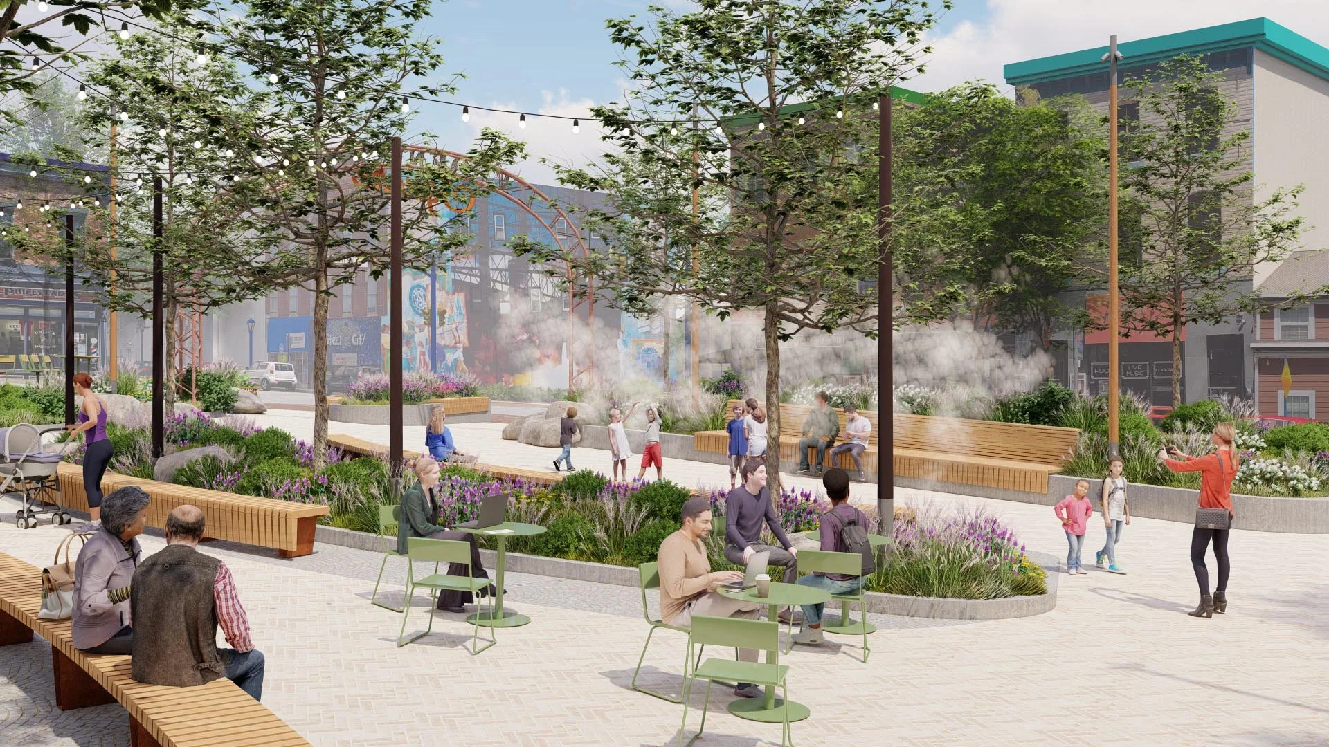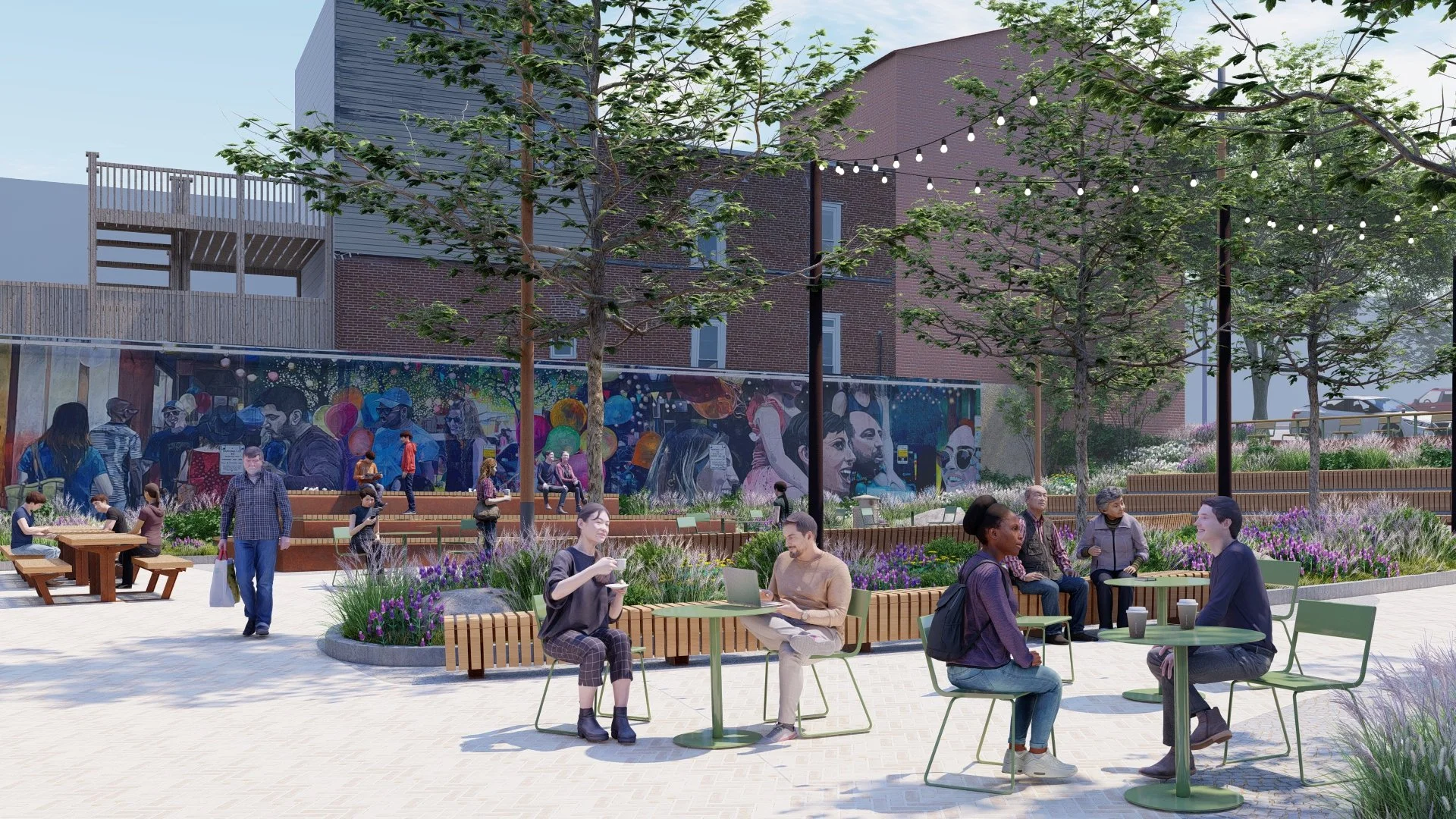 Ground Reconsidered was asked by the City’s Capital Programs Office to envision a more vibrant and active civic space at Thomas Paine Plaza. Located adjacent to Philadelphia City Hall and the Municipal Services Building, Paine Plaza was constructed as part of Philadelphia’s downtown urban renewal in the 1960s. It has long served as Philadelphia’s civic stage, a platform for public demonstration and large-scale events where people from across the City come together to make their voices heard. GR led an extensive engagement process with City employees and the general public, including members of the skateboarding community who had used the site. This process generated priorities for the plaza design, including improved accessibility, an inviting atmosphere, plants and green space, and safe places to sit, relax, and gather. The redesign balances these new priorities with the plaza’s history, preserving space for large-scale demonstration and creating a dedicated area for skateboarders alongside seating elements, shade structures, and on-structure intensive plantings.