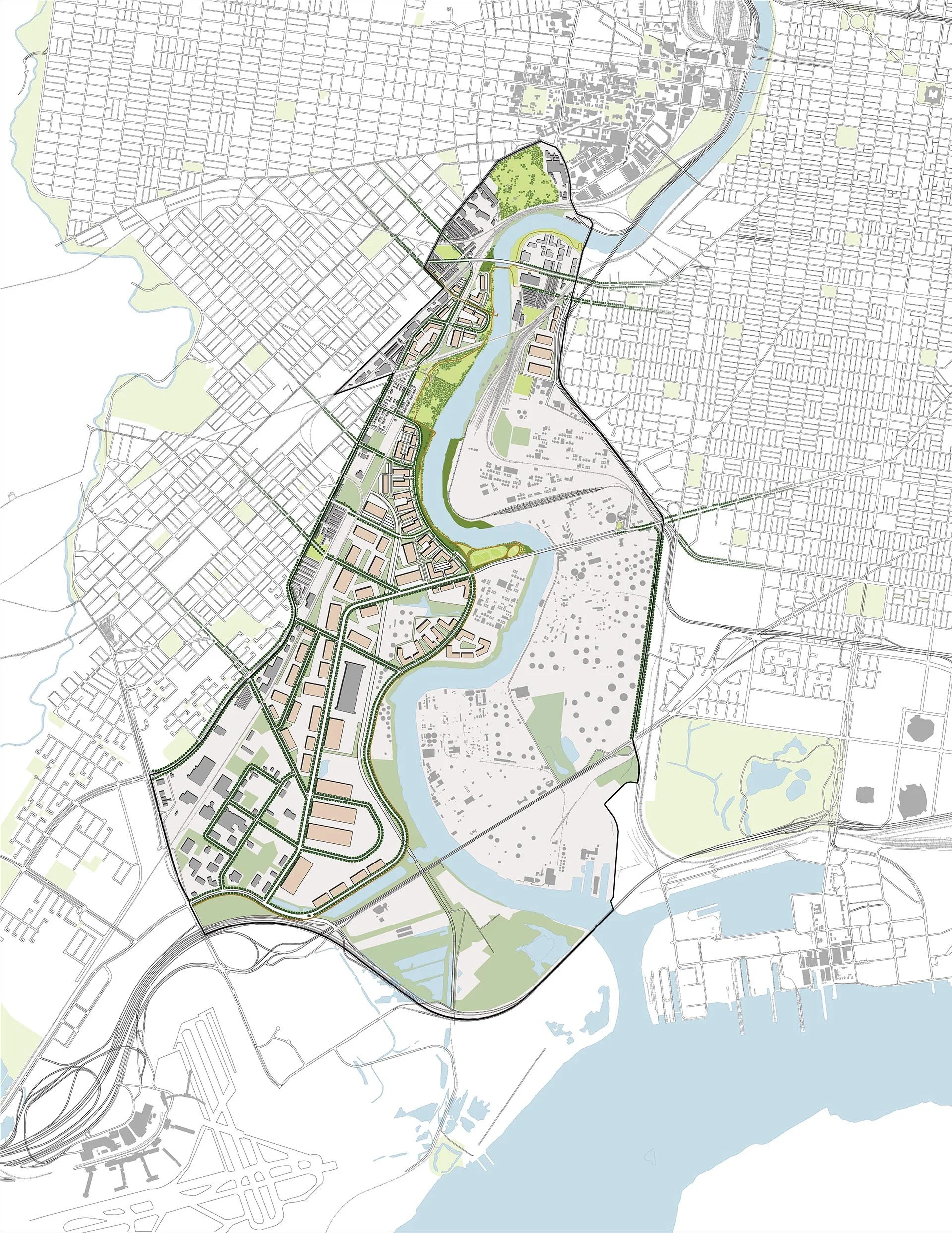 Ground Reconsidered led the landscape architecture component for the development of the Lower Schuylkill River District Master Plan. The study area encompassed a 3,700-acre tract of primarily industrial lands in South and Southwest Philadelphia. The team created a plan for the sustainable redevelopment of this historically significant industrial corridor along both banks of the Schuylkill River.
